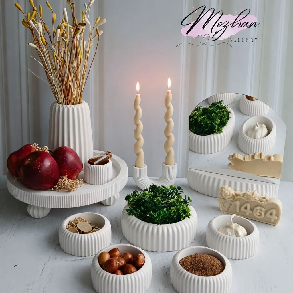 در این ست، تمامی ظروف هفت سین با ظرافت و دقت تولید شدهاند تا علاوه بر کاربردی بودن، بهعنوان یک اکسسوری دکوراتیو لوکس در منزل نیز مورد استفاده قرار گیرند. رنگبندی متنوع و طراحی چشمنواز این محصول باعث میشود به راحتی با دکوراسیون داخلی منزل هماهنگ شود.